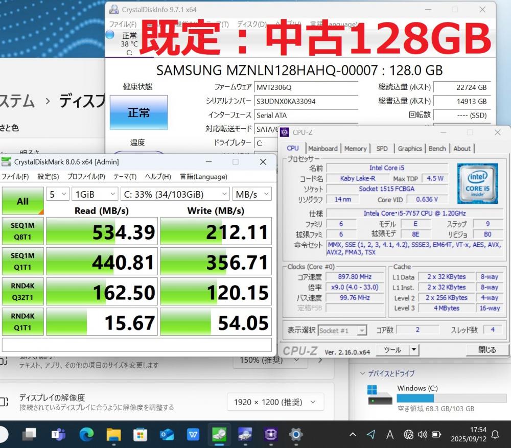 CPU: 超高速 Intel 七世代Core i5-7Y57 1.2Ghz、 (ターボ・ブースト利用時の最大周波数 3.3GHz) |