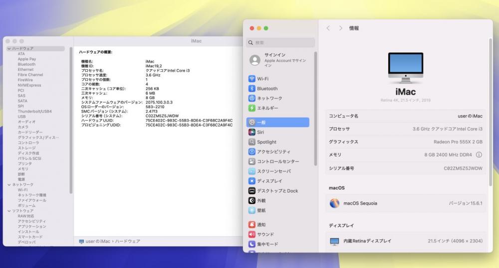 型番: Apple iMac A2116 (Retina 4K,2019) |