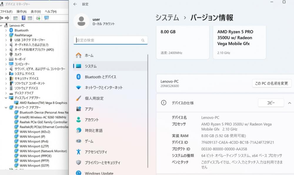| 型番: Lenovo ThinkPad T495 |