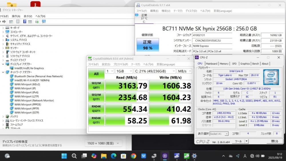 | CPU: 超高速 Intel 卓越性能 第11世代Core i5-1145g7 2.6Ghz、 4コア8スレッド (ターボ・ブースト利用時の最大周波数 4.4GHz) |