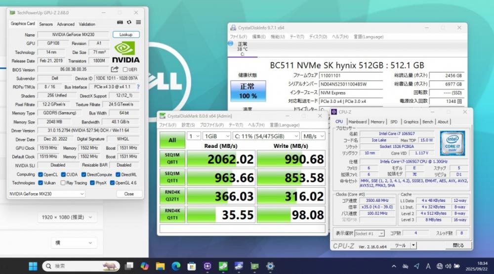 | CPU:    超高速 Intel  超高性能 第10世代Core i7-1065g7 1.3Ghz、 4コア8スレッド (ターボ・ブースト利用時の最大周波数 3.9GHz) |