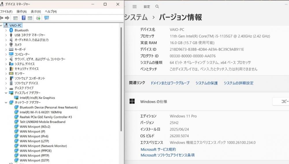 中古美品 フルHD 14型 SONY VJPK211 VJPK211 Windows11 第11世代 i5-1135g7 16GB NVMe 256GB-SSD カメラ 無線Wi-Fi6 Office付き 中古パソコン 管:1136s