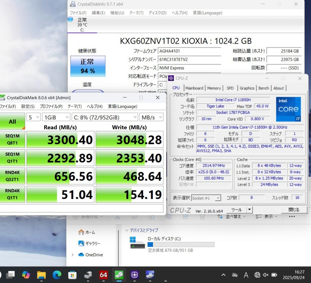 | CPU: 超高速 Intel 8コア 卓越性能 第11世代Core i7-11850H 2.5Ghz、 8コア16スレッド (ターボ・ブースト利用時の最大周波数 4.8GHz) |