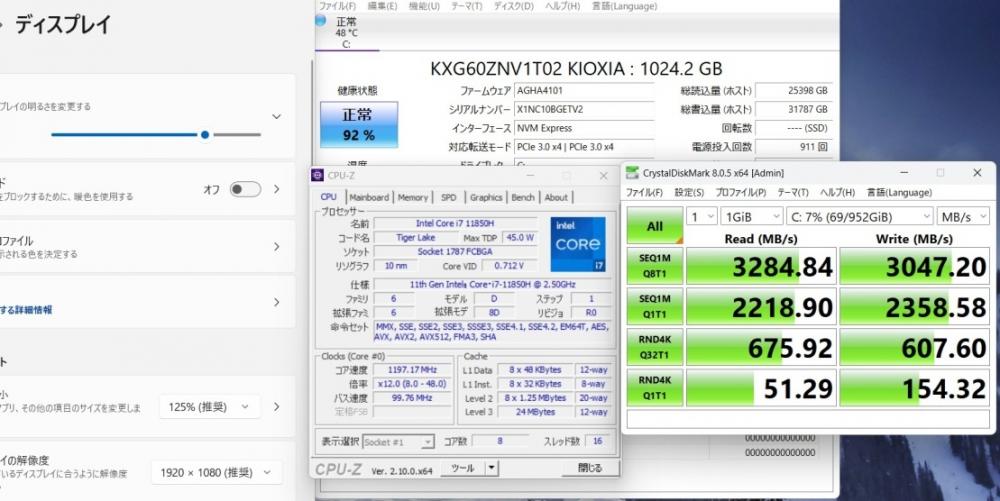 | CPU: 超高速 Intel 8コア 卓越性能 第11世代Core i7-11850H 2.5Ghz、 8コア16スレッド (ターボ・ブースト利用時の最大周波数 4.8GHz) |