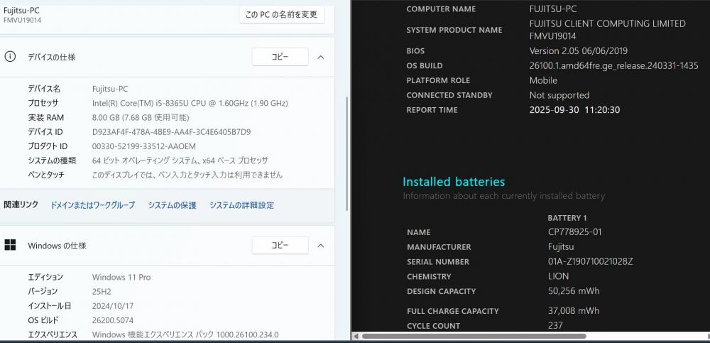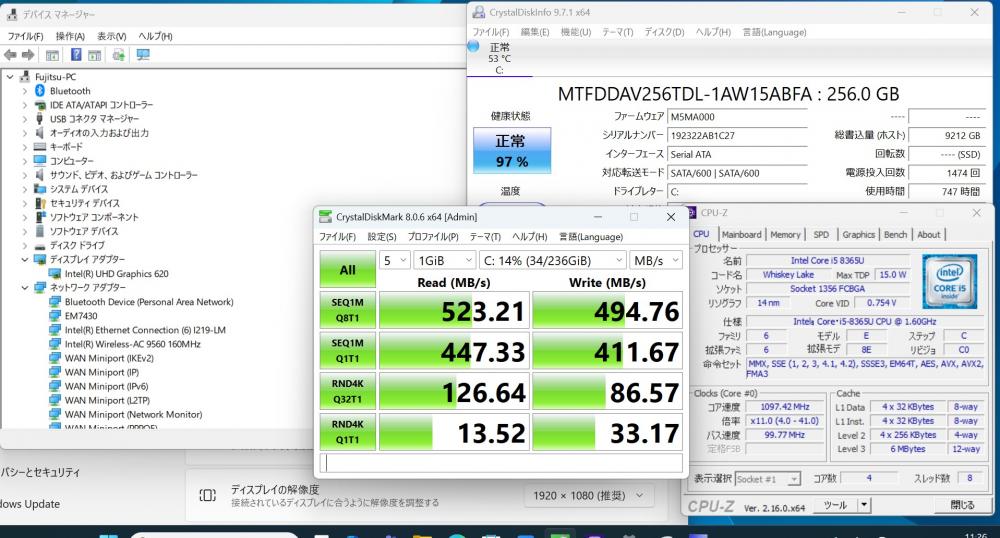 | CPU: 超高速 Intel 高性能 第8世代Core i5-8365U 1.6Ghz、 4コア8スレッド (ターボ・ブースト利用時の最大周波数 4.1GHz) |