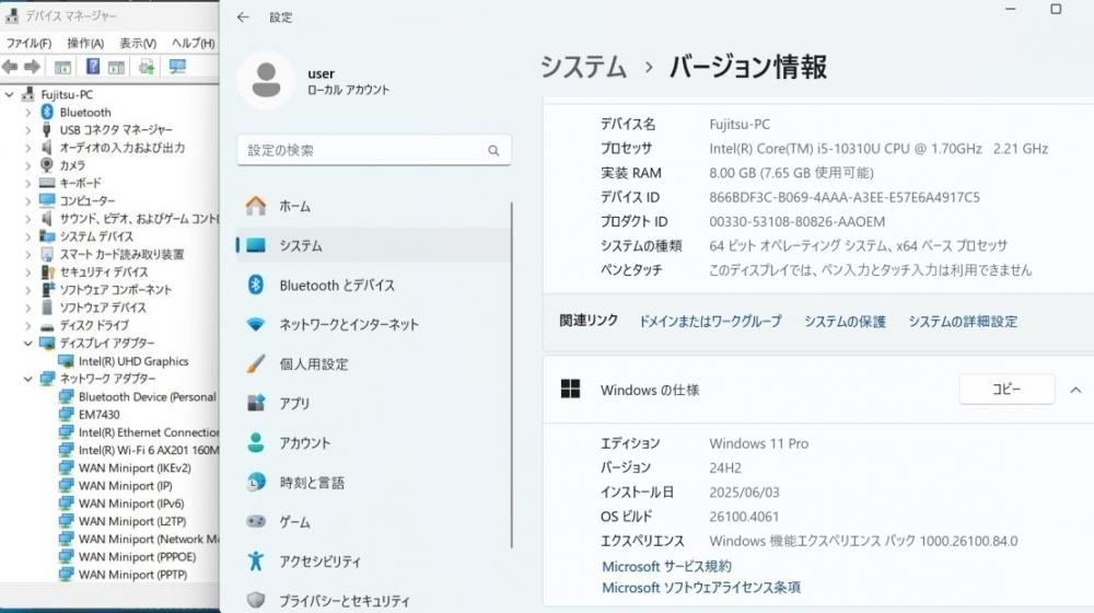 | CPU: 超高速 Intel 超高性能 第10世代Core i5-10310u 1.7Ghz、 4コア8スレッド (ターボ・ブースト利用時の最大周波数 4.4GHz) |