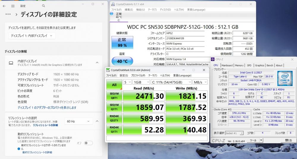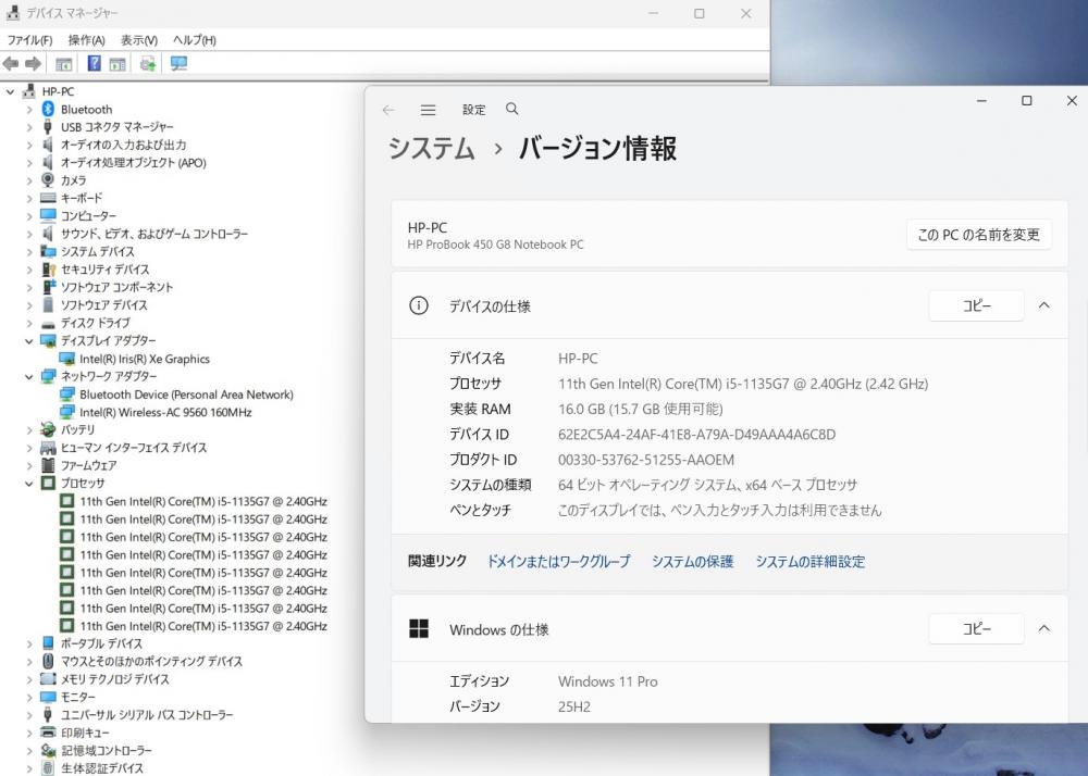 | CPU: 卓越性能 第11世代Core i5-1135G7 2.4Ghz、 4コア8スレッド (ターボ・ブースト利用時の最大周波数 4.2GHz) |