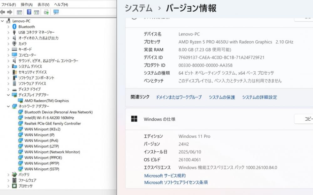 CPU:    超高速 高性能 AMD Ryzen 5-PRO 4650u 2.1Ghz、 6コア12スレッド (ターボ・ブースト利用時の最大周波数 4.0GHz)