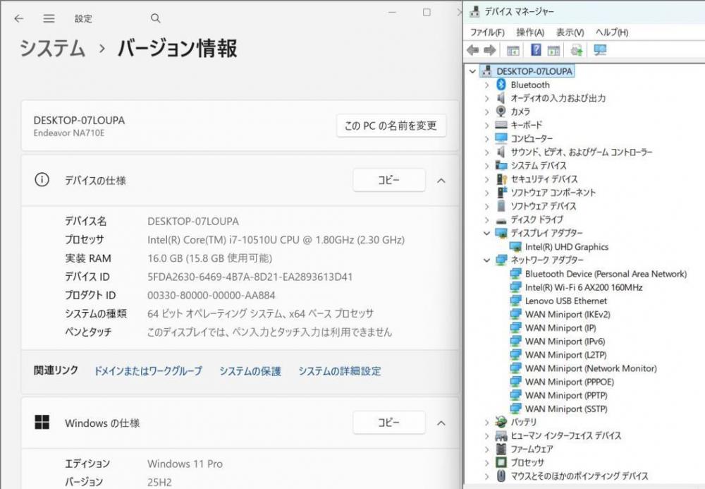 | CPU: 超高速 Intel 超高性能 第10世代Core i7-10510U 1.8Ghz、 4コア8スレッド (ターボ・ブースト利用時の最大周波数 4.9GHz) |