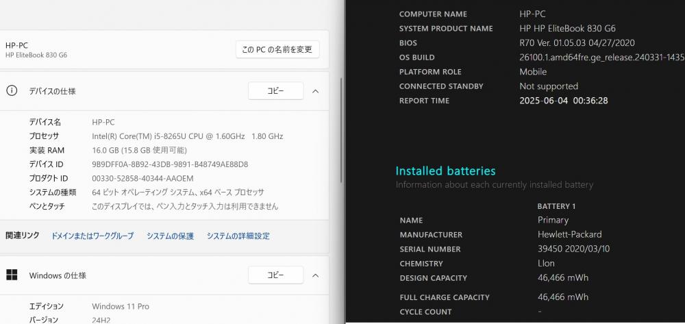 | 型番: HP EliteBook 830 G6 |