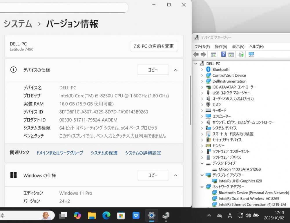 | 型番: DELL Latitude 7490 |