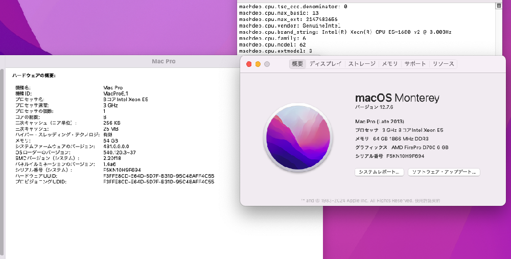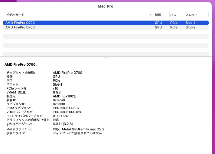 型番:     Apple  MacPro A1481 (Late-2013)