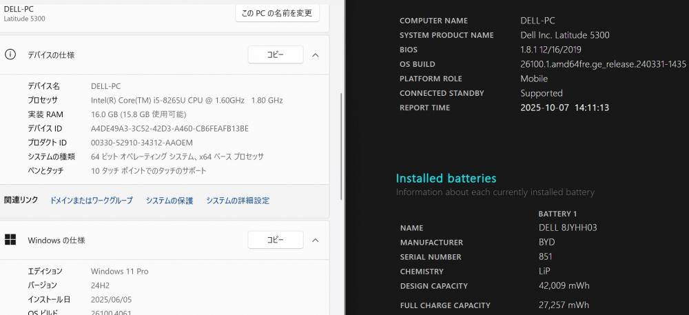 | 型番: DELL Latituda 5300 |