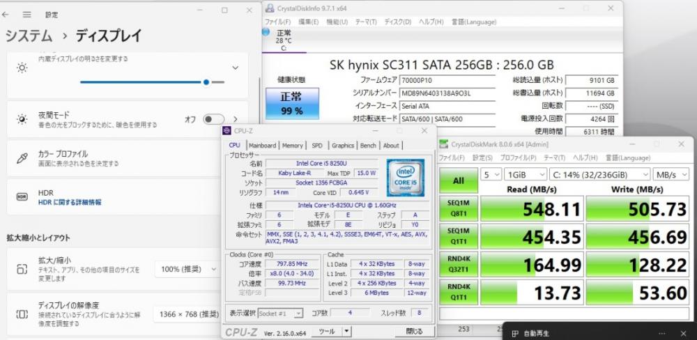 CPU: 超高速 Intel 高性能 第8世代Core i5-8250u 1.6Ghz、 4コア8スレッド (ターボ・ブースト利用時の最大周波数 3.4GHz) |