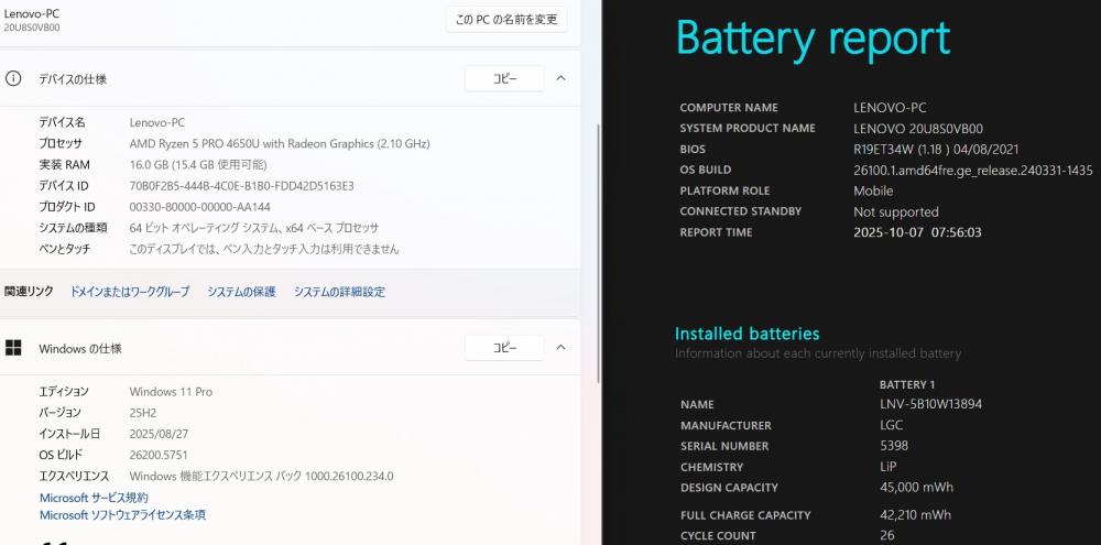 | 型番: Lenovo ThinkPad L15 Gen1 |