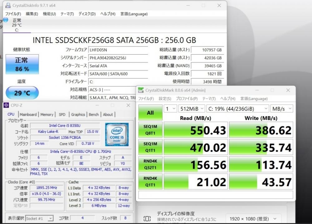 CPU: 超高速 Intel 高性能 第8世代Core i5-8350u 1.7Ghz、 4コア8スレッド (ターボ・ブースト利用時の最大周波数 3.6GHz) |