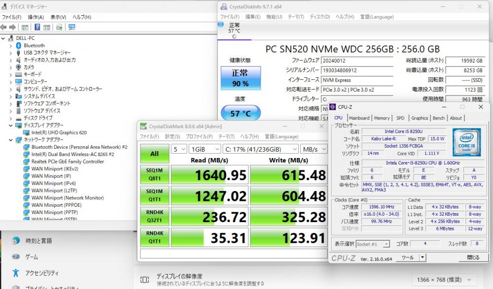 CPU: 超高速 Intel 高性能 第8世代Core i5-8250U 1.6Ghz、 4コア8スレッド (ターボ・ブースト利用時の最大周波数 3.4GHz) |