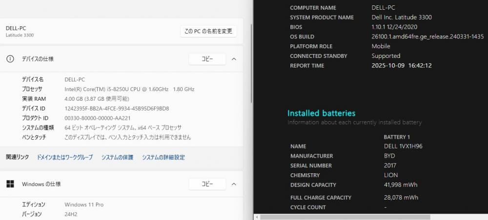 中古 13.3型 DELL Latitude 3300 Windows11 第8世代 i5-8250U 4GB NVMe 256GB-SSD カメラ 無線 Office付き 中古パソコン 税無 管:1709m