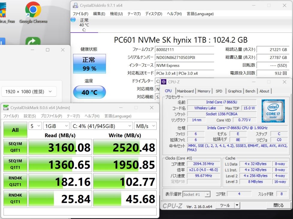 ハードディスク: 爆速NVMe式 SSD 1024GB超高速ドライブを搭載 静かで耐衝撃性に優れ、OSやプログラムなどのソフトの起動速度が大幅に高速化します!! |
