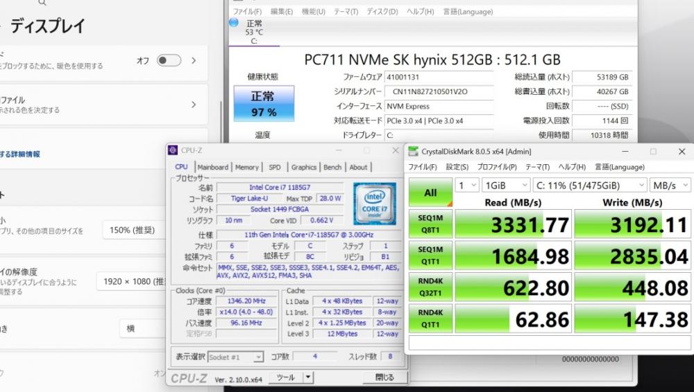 CPU: 超高速 Intel 卓越性能 第11世代Core i7-1185g7 3.0Ghz、 4コア8スレッド (ターボ・ブースト利用時の最大周波数 4.8GHz) |