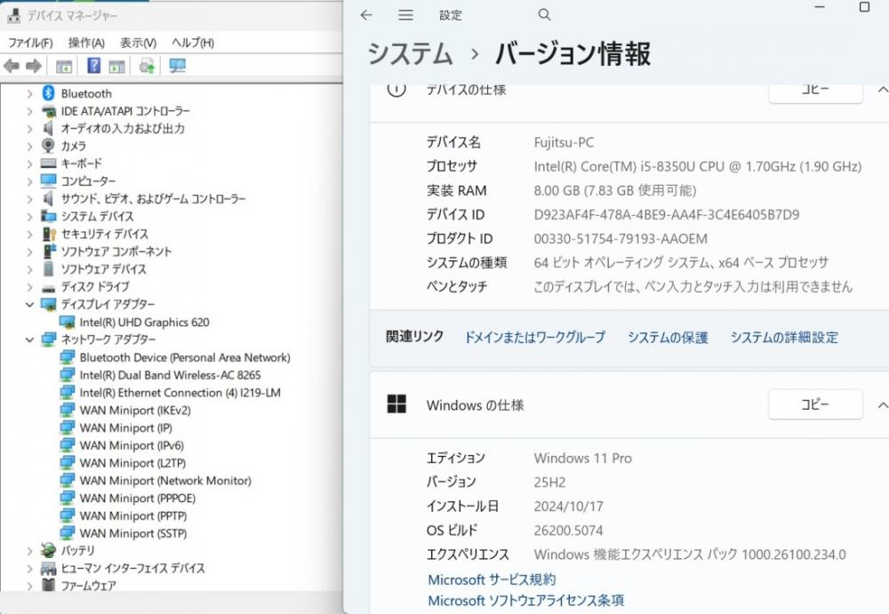 | CPU: 超高速 Intel 高性能 第8世代Core i5-8350u 1.7Ghz、 4コア8スレッド (ターボ・ブースト利用時の最大周波数 3.6GHz) |