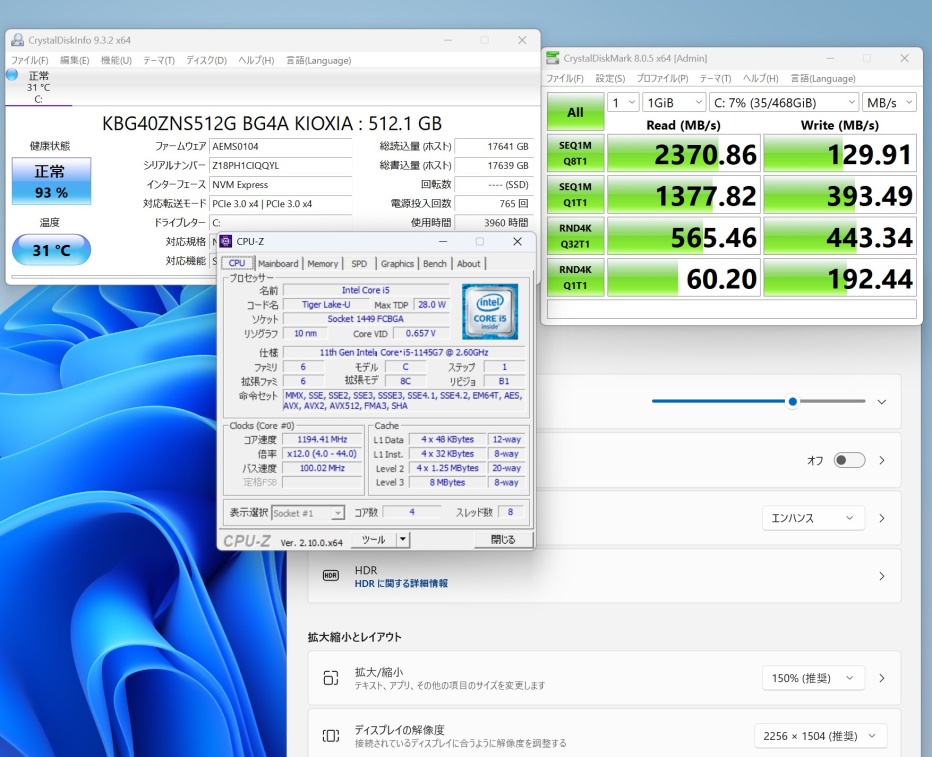 CPU: 超高速 Intel 卓越性能 第11世代Core i5-1145g7 2.6Ghz、 4コア8スレッド (ターボ・ブースト利用時の最大周波数 4.4GHz) |