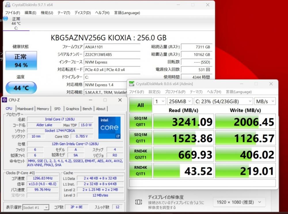 | CPU: 超高速 Intel 10コア 卓越性能 第12世代Core i7-1265U 1.8Ghz、 10コア12スレッド (ターボ・ブースト利用時の最大周波数 4.8GHz) |