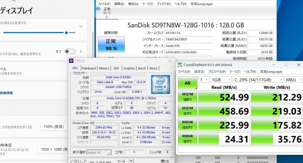 CPU:    超高速 Intel 高性能 第8世代Core i5-8350u 1.7Ghz、 4コア8スレッド (ターボ・ブースト利用時の最大周波数 3.6GHz)