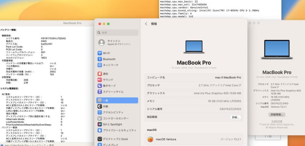 リカバリー: (インターネットリカバリー macOS 10.13)あり、 いつでもパソコンを工場出荷時の状態に戻すことできます。 初心者でもご安心ください。 |