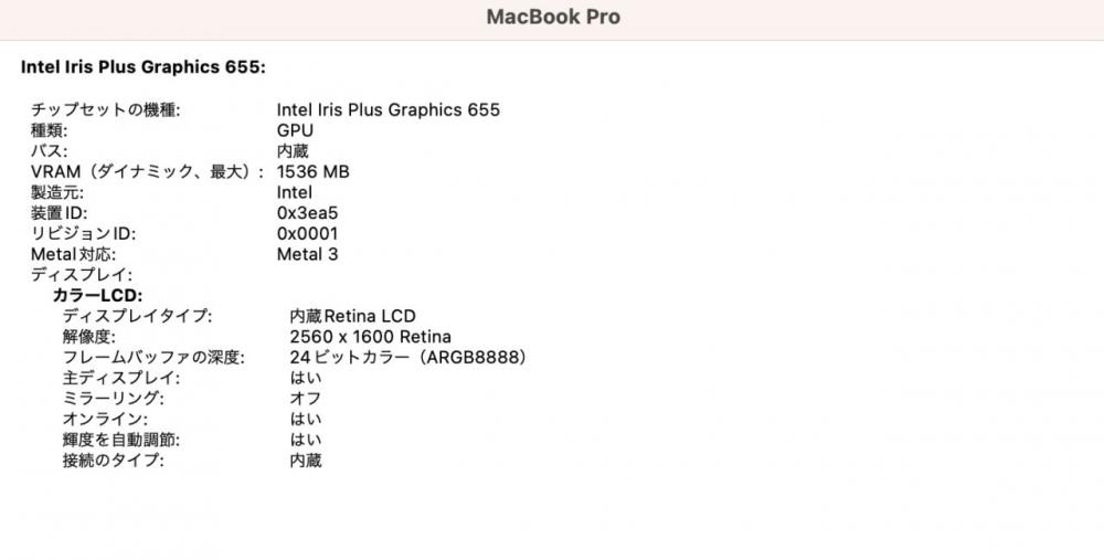 ディスプレイ: 2K対応 13.3インチ光沢液晶 高輝度 広視野角 LEDバックライト 2560 x 1600解像度 1677万色———— |