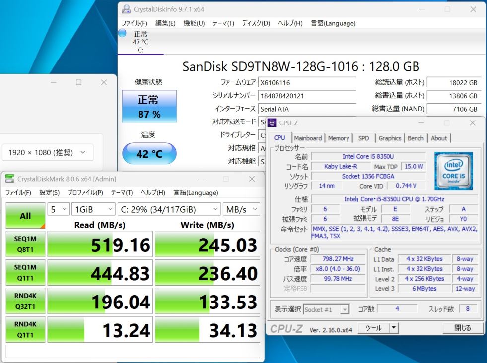 CPU:    超高速 Intel 高性能 第8世代Core i5-8350U 1.7Ghz、 4コア8スレッド (ターボ・ブースト利用時の最大周波数 3.6GHz)