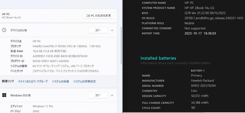 | 型番: HP ZBOOK 14u G5 |