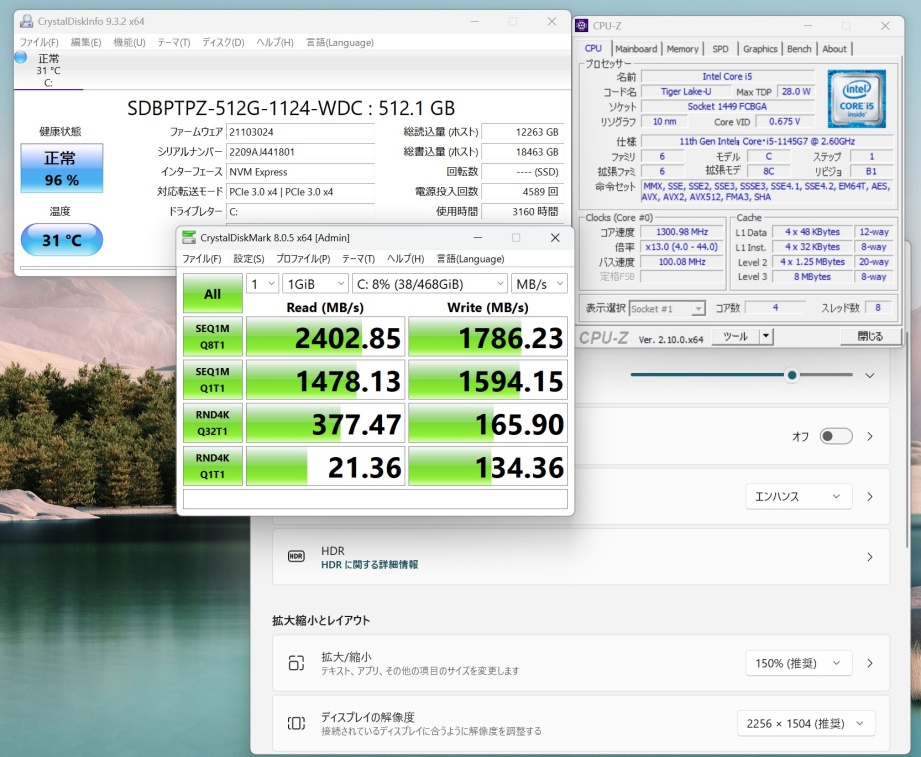 CPU: 超高速 Intel 卓越性能 第11世代Core i5-1145g7 2.6Ghz、 4コア8スレッド (ターボ・ブースト利用時の最大周波数 4.4GHz) |