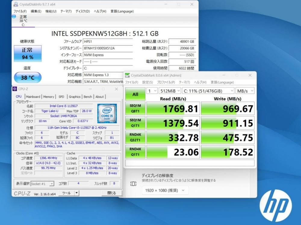 | CPU: 超高速 Intel 卓越性能 第11世代Core i5-1135G7 2.4Ghz、 4コア8スレッド (ターボ・ブースト利用時の最大周波数 4.2GHz) |