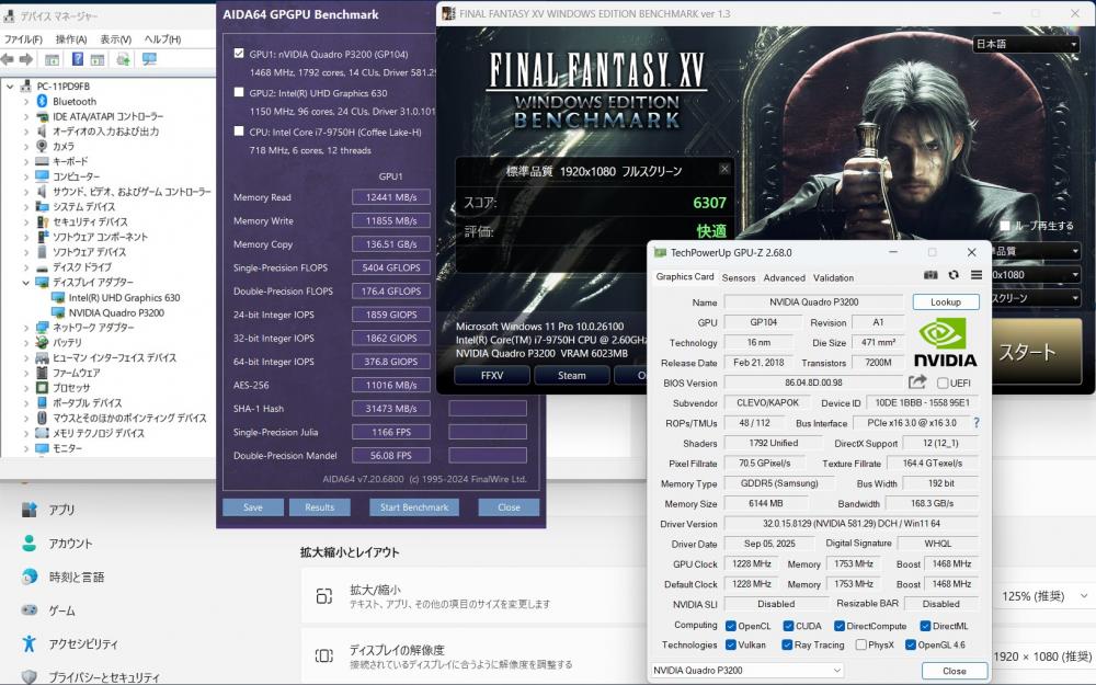 | ディスプレイ: フルHD 15.6インチ高輝度 広視野角 LEDバックライト 1920 x 1080解像度 グラフィックス NVIDIA Quadro P3200 搭載、大容量 6G専用ビデオメモリーvRAM 快適使用体験! 専門向けのグラフィックスですが、ゲーミング性能にも、RX 6500XT < Quadro P3200 = GTX 1650 Super |