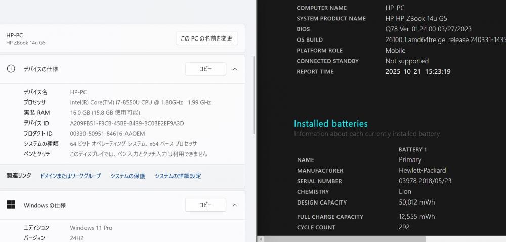 ゲーミングPC 中古 フルHD 14型 HP ZBOOK 14u G5 Windows11 第8世代 i7-8550U 16GB NVMe 512GB-SSD Radeon Pro WX3100 カメラ 無線 Office付き 中古パソコン 管:1555m