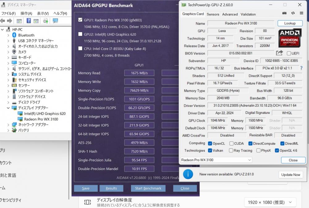 グラフィックス Radeon Pro WX3100 搭載、大容量 2048M専用ビデオメモリーvRAM 快適使用体験!