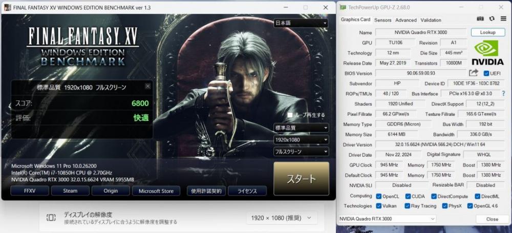 | ディスプレイ: フルHD 15.6インチ高輝度 広視野角 LEDバックライト 1920 x 1080解像度 グラフィックス NVIDIA Quadro RTX 3000 搭載、大容量 6G専用ビデオメモリーvRAM 快適使用体験! 専門向けのグラフィックスですが、ゲーミング性能にも、Quadro RTX 3000 (Mobile) = GTX 1660 Super |