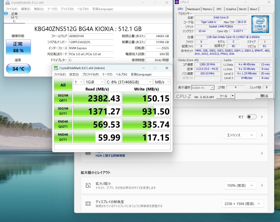 CPU:    超高速 Intel 卓越性能 第11世代Core i5-1145g7 2.6Ghz、 4コア8スレッド (ターボ・ブースト利用時の最大周波数 4.4GHz)