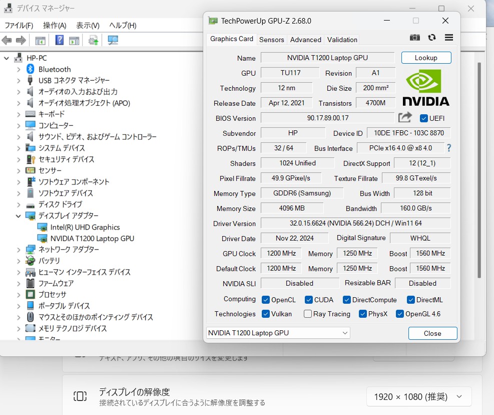 | ディスプレイ: フルHD 15.6インチ高輝度 広視野角 LEDバックライト 1920 x 1080解像度 グラフィックス NVIDIA T1200 Laptop 搭載、大容量 4096M専用ビデオメモリーvRAM 快適使用体験! 専門向けのグラフィックスですが、ゲーミング性能にも、GTX 970 < Quadro T1200 < GTX 1060 |