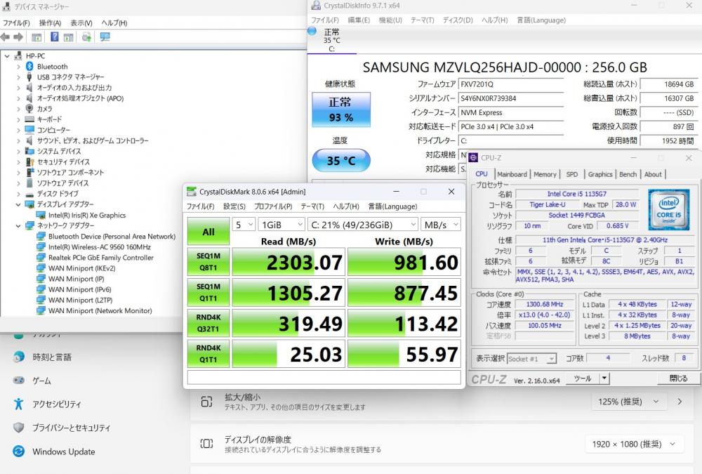 | CPU: 超高速 Intel 卓越性能 第11世代Core i5-1135G7 2.4Ghz、 4コア8スレッド (ターボ・ブースト利用時の最大周波数 4.2GHz) |