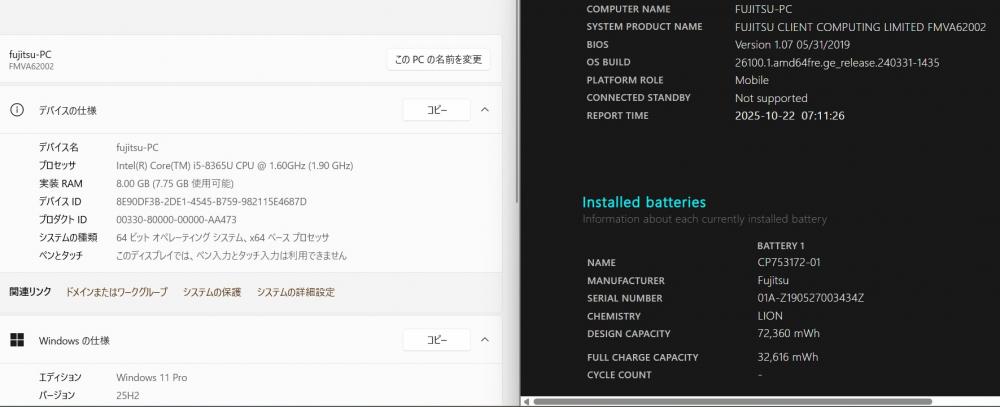 | 型番: Fujitsu LIFEBOOK A579A |