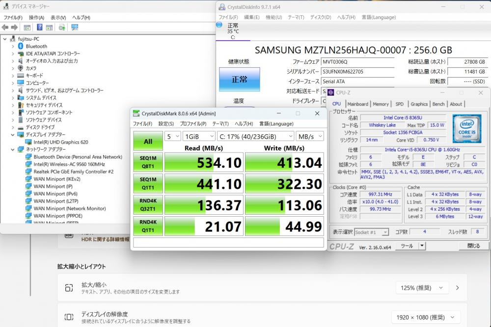 | CPU: 超高速 Intel 高性能 第8世代Core i5-8365U 1.6Ghz、 4コア8スレッド (ターボ・ブースト利用時の最大周波数 4.1GHz) |