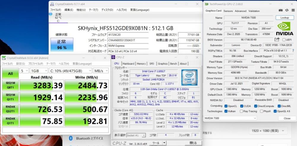 ゲーミングPC 中古良品 フルHD 15.6型 Lenovo ThinkPad P15s Gen2 Windows11 第11世代 i7-1185G7 16GB NVMe 512GB-SSD NVIDIA Quadro T500 カメラ 無線Wi-Fi6 Office付き 中古パソコン 管:171