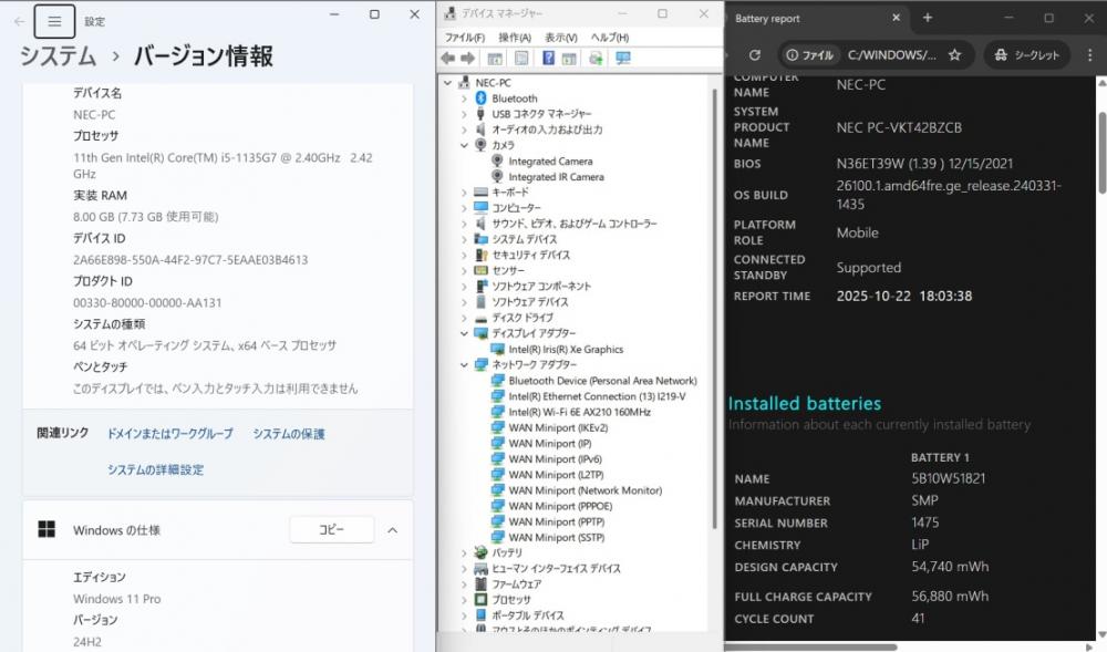 良品 フルHD対応WUXGA 13.3型 NEC VersaPro VKT42B-B Windows11 第11世代 i5-1135G7 8GB NVMe 512GB-SSD カメラ 無線Wi-Fi6 Office付き 中古パソコン 管:0971w