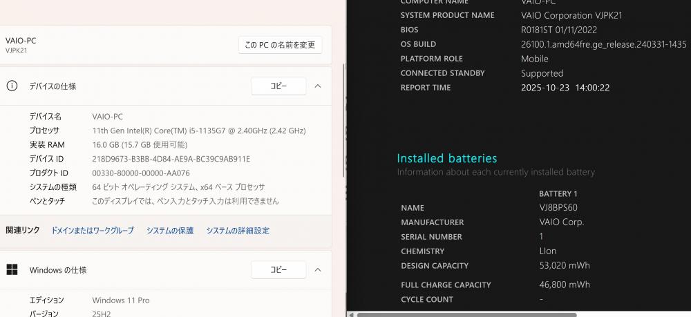 | 型番: SONY VAIO Pro PK VJPK21 |