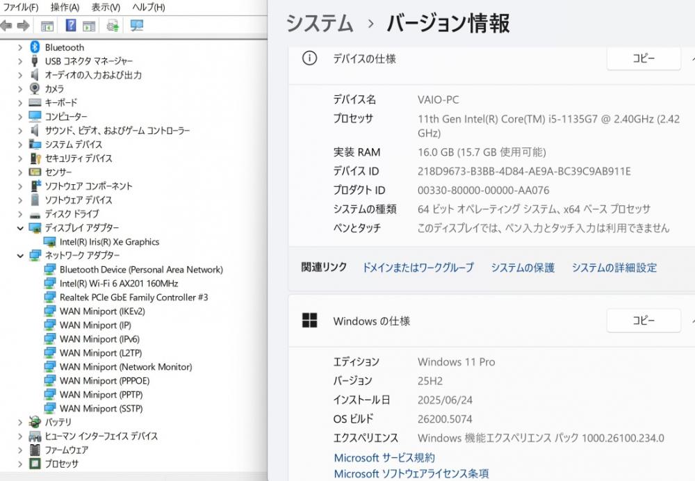 | 型番: SONY VAIO Pro PK VJPK21 |