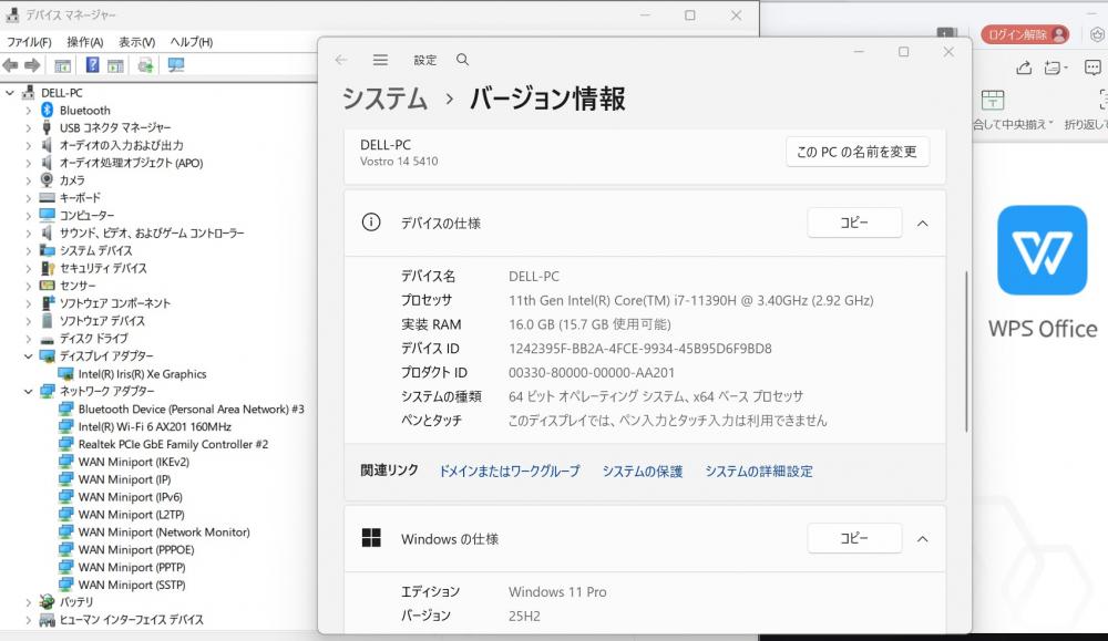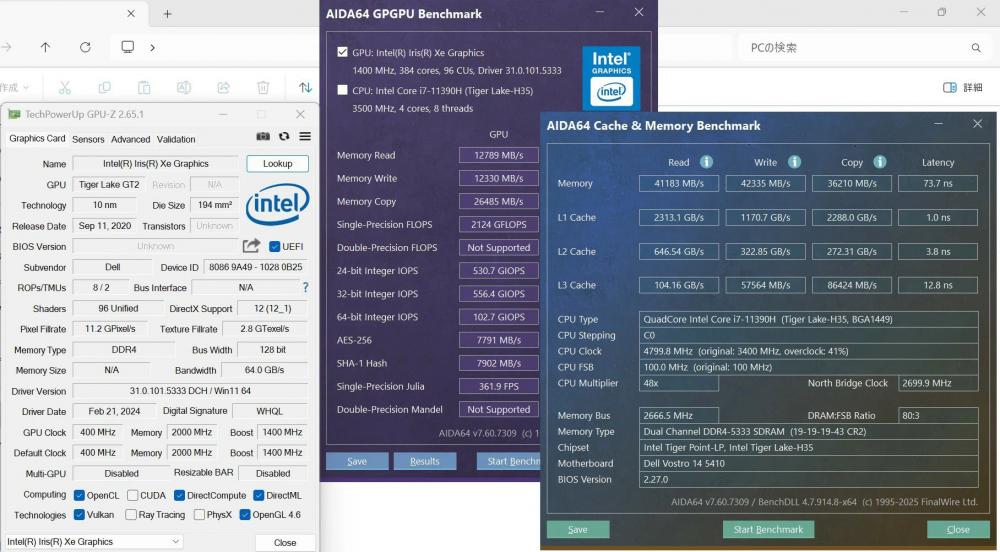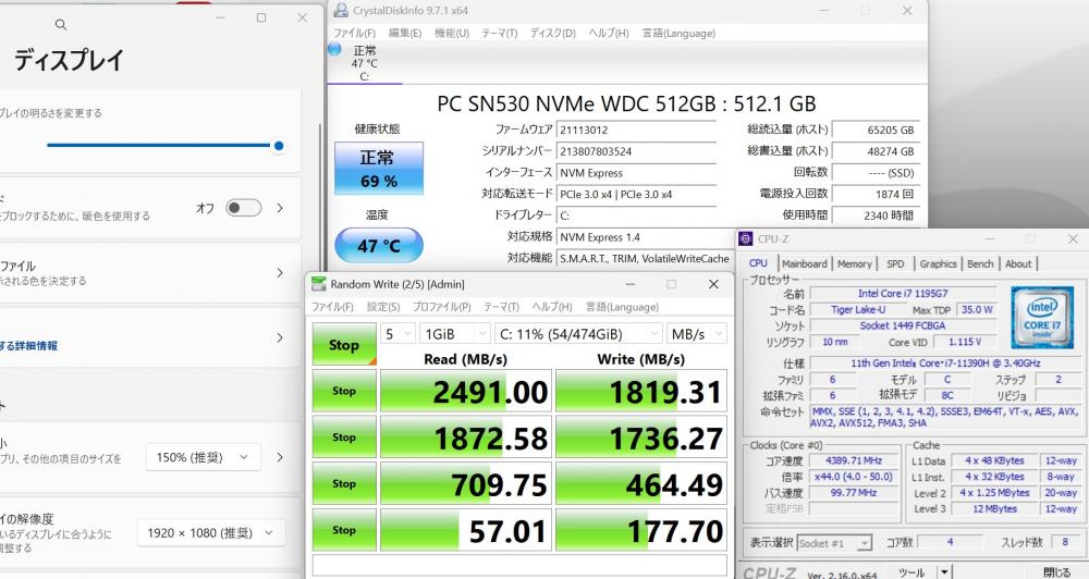 | CPU: 超高速 Intel 卓越性能 第11世代Core i7-11390H 3.4Ghz、 4コア8スレッド (ターボ・ブースト利用時の最大周波数 5.0GHz) |