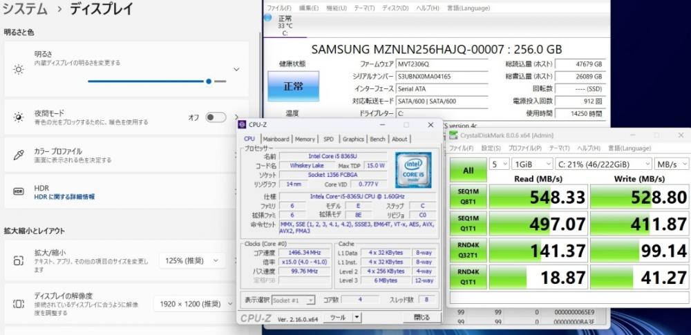 | CPU: 超高速 Intel 高性能 第8世代Core i5-8365u 1.6Ghz、 4コア8スレッド (ターボ・ブースト利用時の最大周波数 4.1GHz) |