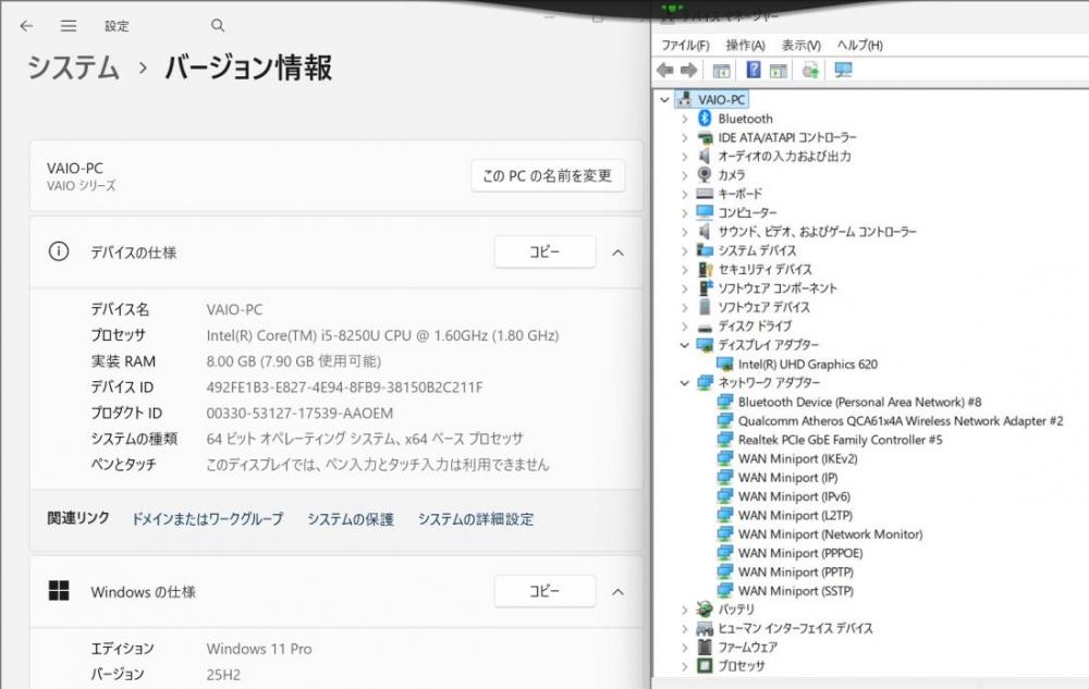 中古 フルHD 13.3型 SONY VAIO VJPG11C11N Windows11 第8世代 i5-8250U 8GB 256GB-SSD カメラ 無線 Office付き 中古パソコン 管:1037v